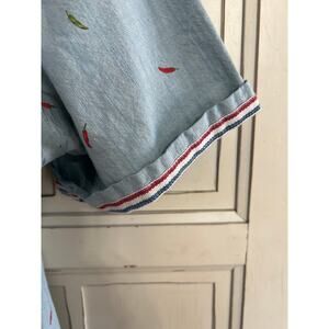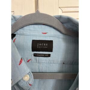 Jachs New York size large tall short sleeve button down shirt. Light blue with chili peppers. Great condition. Measures 22 1/2” from armpit to armpit and 29” long.