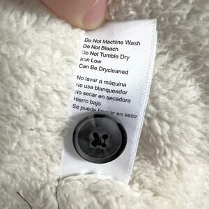 Jachs New York sherpa lined shirt jacket. Shell: 76% polyester, 11% wool, 7% acrylic, 6% other. Body lining: 100% polyester. Sleeve lining: 100% polyester. Filling: 100% polyester. 2 button flap chest pockets, 2 side seam pockets, 1 interior pocket. Button front closure, sleeve cuffs with button closure.