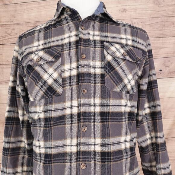 Jachs Shirt Mens Medium Gray Plaid Heritage Flannel Button Up Double Pocket Casual