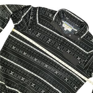 Chic black and white jacket with unique patterns. Ideal for outdoor adventures.