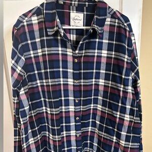 Jachs girlfriend Fall plaid flannel blue Pink Cowgirl western shirt Bonfire M