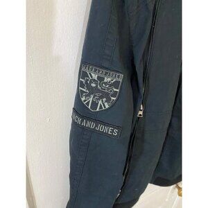 Jack And Jones Men's Black/Blue Reversible Military Aviator Bomber Jacket - Larg