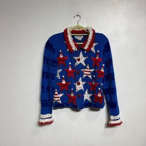 Jack B. Quick Blue USA Christmas Vintage Cardigan Sz M