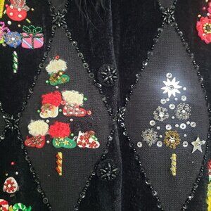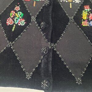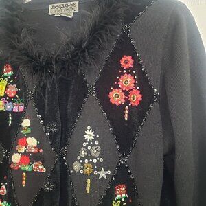 Jack B Quick Embellished Holiday Cardigan Sequins Beaded Faux Fur Womens Large