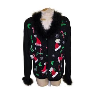 Jack B Quick Womens XL Christmas Cardigan Sweater Embellished Beaded Vintage