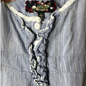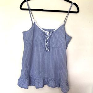 Jack BB Dakota Tank Top Denim Striped Blue White Colored Flowy‎ Ruffles Large