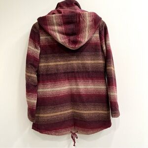 Jack BB Dakota maroon wool blend drawstring long line striped coat size medium