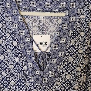 Jack BB Dakota, navy blue/white printed dress. Size L. NWT.