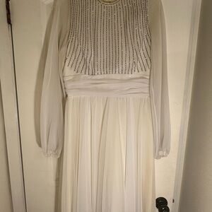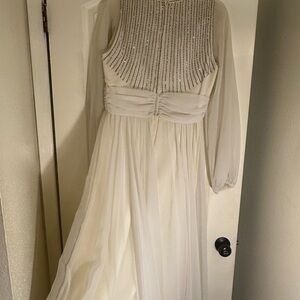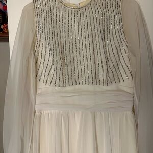 Jack Bryan Beaded Chiffon Dress - Sheer Sleeves With Beaded Bodice