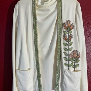Jack Bryan Vintage 2 Piece Cream Dress With Elaborate Beaded Cardigan Jacket