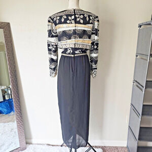 Jack Bryan Vintage Black Beaded Long Sleeves Evening Gown Size 16