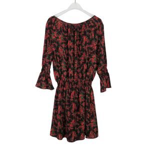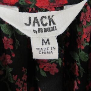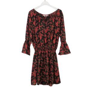 Jack By BB Dakota Black Red Floral Print Tie Front Bell Sleeve Dress Medium