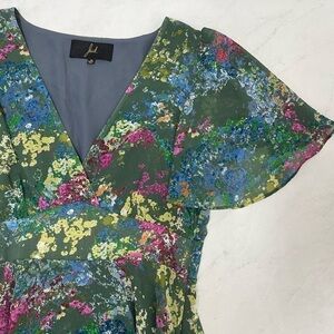Jack By BB Dakota Green Floral Flutter Mini Dress Size Medium