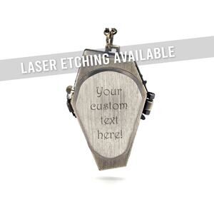 Celebrate your love for all things spooky with this Jack Coffin Pocket Watch. A perfect blend of gothic charm and functionality, this 2-inch tall, 1.5-inch wide pendant is ideal for fans of nightmares, Halloween, and gothic fashion. Whether you're accessorizing a costume or just embracing your eerie style, this watch is sure to be a conversation starter!