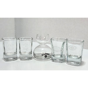 Jack Daniels Collectors Shot Glass Set of Five 5 Water Over Whiskey Shooter 2001
