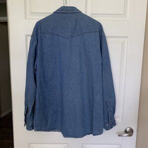 Jack Daniels Denim Men’s Large Shirt Blue Long Sleeve American Flag Dove Patch