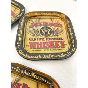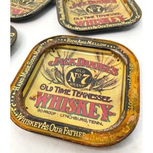 Add a touch of vintage charm to your bar with this set of four metal coasters featuring the iconic Jack Daniel's No. 7 Whiskey label. The coasters are multi-colored and showcase the distillery theme. Perfect for any Jack Daniel's collector or whiskey enthusiast, these vintage coasters are a must-have for your barware collection. The brand is highly recognized and widely loved, making this set a great addition to your home or as a unique gift for a friend. Great vintage set of 4 Does have vintage wear and scuff marks Please see all pics to see the condition of this item If you have any questions please message me. Thanks again Ships fast