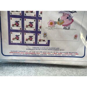 Jack Dempsey Needle Art White Quilt Blocks Garden Girl Embroidery 18" x 18" Cott