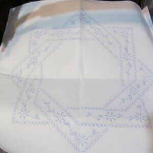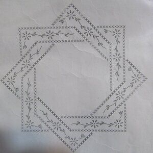Package contains one set of six 18" x 18" white quilt blocks, pattern #137, cross-stitch and lazy daisy design