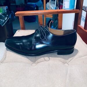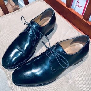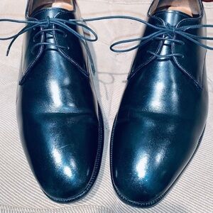 Jack Erwin Black Plain Toe Derby Shoe is a full grain leather dress shoe made in Spain. Jack Erwin shoes are made in Portugal and Spain but the top full leather grain shoes where made in Spain. These shoes are the top tier shoes with leather lining, derby style, stacked heel, leather out soles covered with sole and heel protectors. These shoes has the best leather to keep a fantastic gleamy mirror like shine. This a premium shoe is build to last. BDR