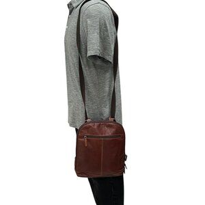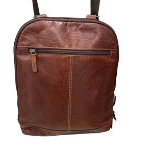Jack Georges Brown Leather Backpack Sling Bag Crossbody Messenger Retro Office