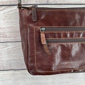 Jack Georges Brown Leather Purse 6 Zippered Pockets