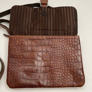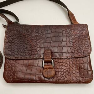 Jack Georges Hornback Croco Wallet On A String Brown Leather Crossbody Purse