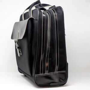 Crafted for professionals, this rolling bag combines functionality and style, featuring durable materials, organized compartments, and smooth-rolling wheels for convenience.