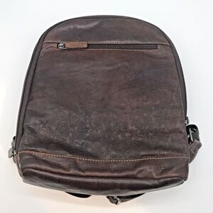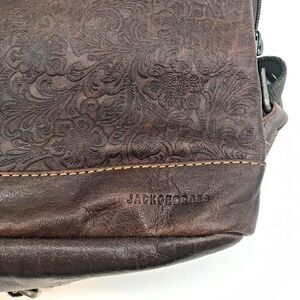 Jack Georges Voyager Convertible Backpack Crossbody Bag Brown Embossed Leather