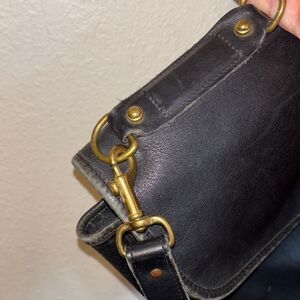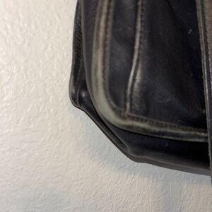 Black leather briefcase from Jack Georges. Some wear to exterior leather (pictured).