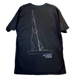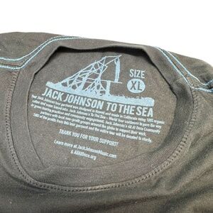 The product is a limited edition XL black shirt featuring Jack Johnson's To The Sea 2010 World Tour design. Made from organic cotton with a crew neck and short sleeves, this regular fit T-shirt is machine washable for easy care. Perfect for the summer and spring seasons, this shirt is ideal for men looking to add a unique piece to their wardrobe from the brand JACK. Made in the United States, this shirt is a must-have for any Jack Johnson fan or collector of limited edition merchandise.