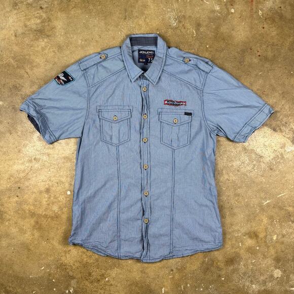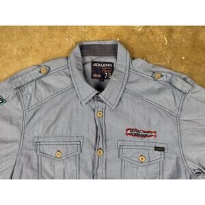 Jack & Jones Airborne Hitch Shirt Men’s XL Royal Navy Military Patches Blue