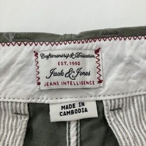 Jack & Jones Flat Front Chinos, Sage colored with sailboat pattern Size S