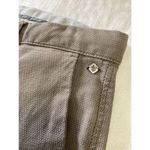 VGUC, Tan color, dot design, belt loops, drawstring, side pockets, back pockets, slim fit, size: waist: 15.5” flat front, rise:10.5”, Inseam 31”.