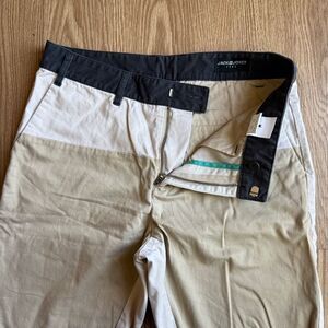 Experience modern style with these Jack & Jones flat front shorts, featuring a sleek tan and black color scheme. Crafted for comfort and versatility, they are perfect for casual outings or relaxed days.
