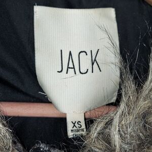 Jack by BB Dakota Leary Patterned Coat with Faux Fur Trim. Black and Grey pattern. Snaps and Toggle closures. Pockets on front. Drawstring at waist.