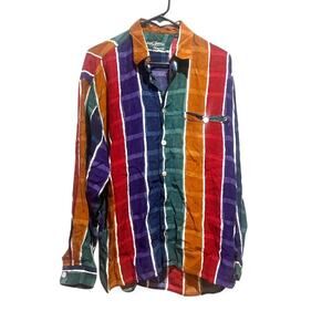 Jack Lipson Signature Colorful Pattern Casual Dress Shirt Size M Vicose Button