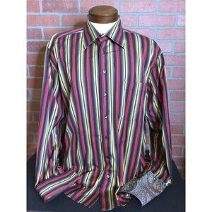 Jack Liyson Mens Button Up Shirt Striped Long Sleeve Contrast Flip Cuffs XL