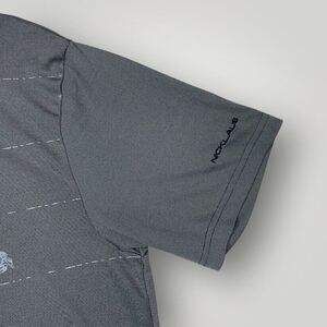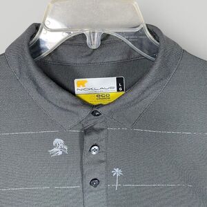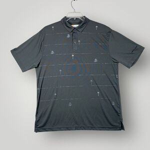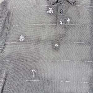 Jack Nicklaus Golf Polo Shirt Black White Stripe Palm Trees Short Sleeve Mens LG