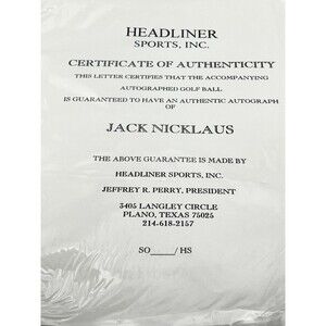 Jack Nicklaus Signed Golf Ball w/ COA & Tournament Program Signature Aug 2005