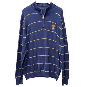Jack Nicklaus Sweater Mens XL Blue Gold Stripe KIAWAH Logo 1/4 Zip Pullover VTG