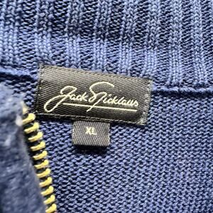 Vintage Jack Nicklaus Sweater Mens XL Blue Gold Stripe KIAWAH Logo 1/4 Zip Pullover 100% Mercerized Cotton Long Sleeve Golf Knit