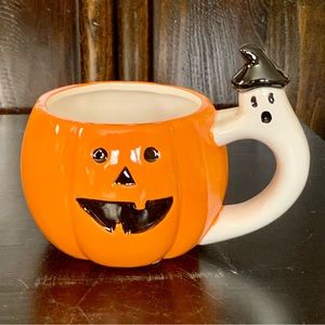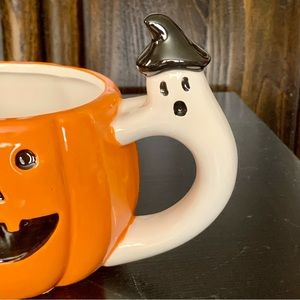 Jack O’Lantern with Ghost Witch Handle Ceramic Halloween Mug