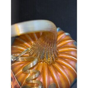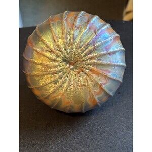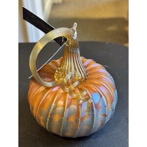 The Jack Pine Hand Blown Glass Pumpkin is a unique artisan crafted piece that is hand-painted with a luster pattern in multicolored glass. Made in Ohio in the 21st century, this modern style pumpkin ball is a beautiful and original decorative item for any space. The detailed craftsmanship and vibrant colors make it a standout piece for collectors of art glass. No chips no cracks no stains. (NO BOX)