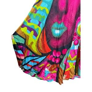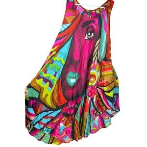 Jack Pot Abstract Art Dress OS Rayon Handkerchief Hem Colorful Graphic Face Boho