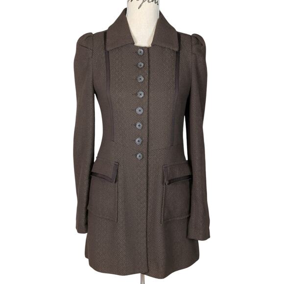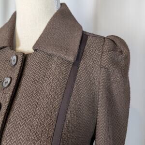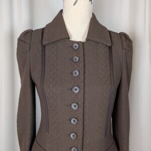 Jack Puff Shoulder Poetcore Coat Jacket Herringbone Tweed Brown Small