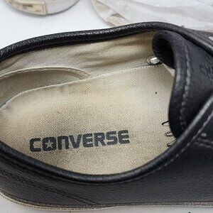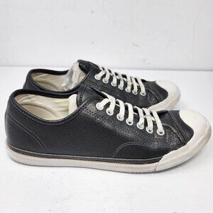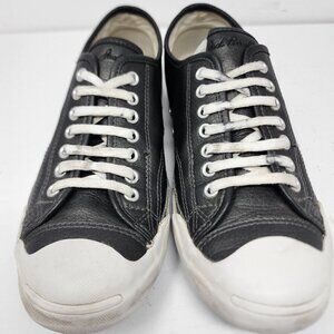 Converse's Jack Purcell Black Leather Blue Soled Sneakers in size 7.5 for men combine style and durability. The black leather upper is complemented by iconic blue soles.