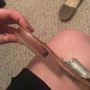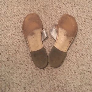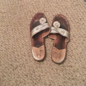 Women's silver Jack Rogers sandals, size 9. Obvious signs of wear, however they will still make for a great pair of sandals! Right heel is starting to crack (as seen in last photo) it's a quick, cheap fix! Feel free to make reasonable offers!