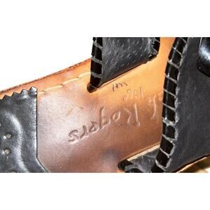 Jack Rogers Adeline Black Whipstitched Leather Bow Flat Sandals Women's size 7M