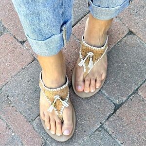Jack Rogers Alana Cork White Leather Tassel Thong Flip Flop Sandals Size 9.5
